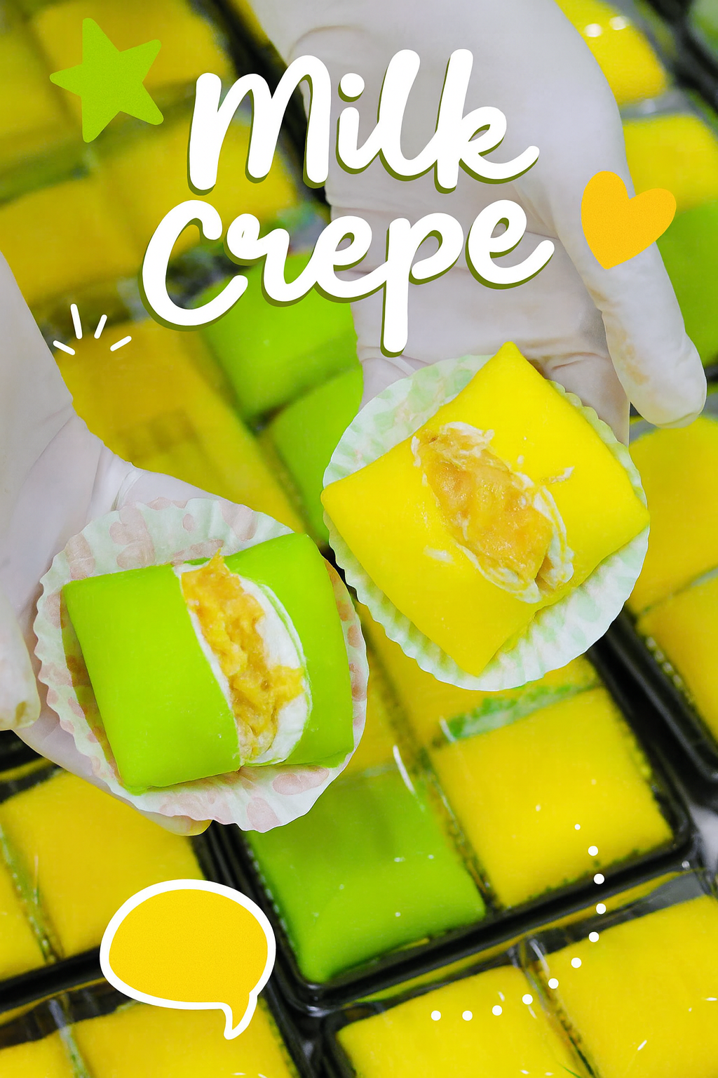 來自 9 Sạch 的榴槤可麗餅,嚴選 頂級榴槤 RI6 一級果肉,搭配輕盈鮮奶油,層層綿密,口感滑順。