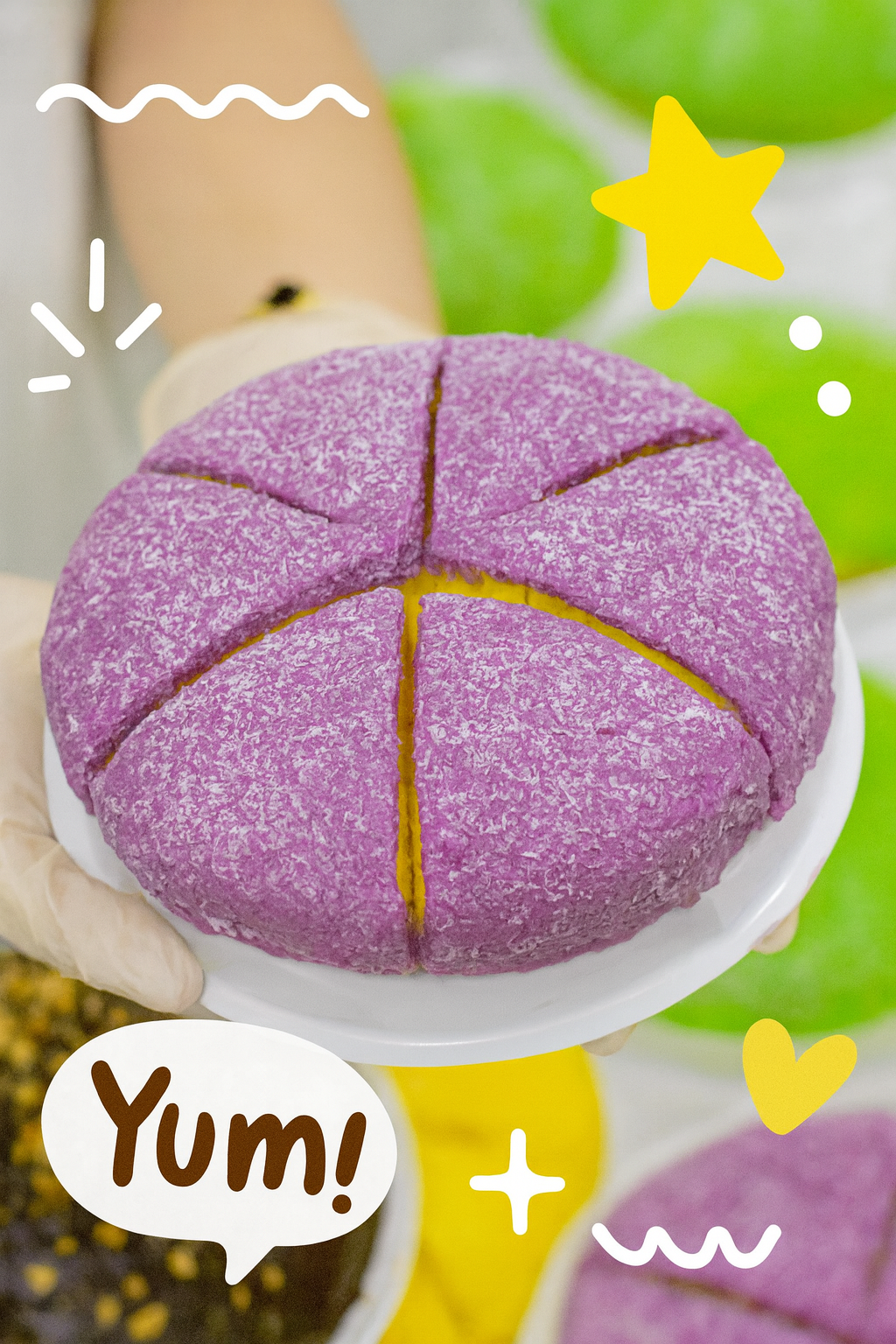 綿密柔滑的芋頭香氣,結合新鮮榴槤果肉與香濃奶油,再搭配表面灑上的椰絲,每一口都是難以忘懷的美味體驗 💜💛。